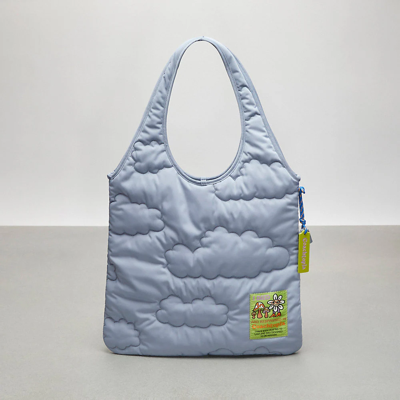 Right on so many levels: the Coachtopia Loop Cloud Tote is an ultra-versatile everyday bag with a large handle designed to slip neatly over the shoulder and plenty of room for your laptop books and more. Its shell and stuffing are made from 100% recycled PET plastic which means it's not only got a 31% lower carbon footprint than a similar bag made in new materials but thanks to this monomaterial design approach the core components are also recyclable as part of a closed-loop system. Return it to us when it's no longer usable and we'll turn it into a new Coachtopia Loop product - how's that for Made Circular design? Coachtopia Loop Quilted Cloud Tote - Twilight