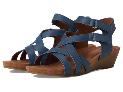 Cobb Hill Helin - Women's Wedge Shoes : Blue Leather : The Cobb Hill Helin wedge sandal is as versatile as it gets! ; Leather upper. ; Strappy vamp design. ; Dual adjustable hook-and-loop closures at the ankle. ; Textile lining. ; EVA footbed. ; Cushioned sock and footbed traction. ; Flexibility in outsole arch support. ; Imported. Measurements: ; Heel Height: 1 1 2 in ; Weight: 9 oz ; Product measurements were taken using size 9, width B - Medium. Please note that measurements may vary by size. | Cobb Hill Helin Women's Wedge Shoes Blue Leather : 9 D - Wide