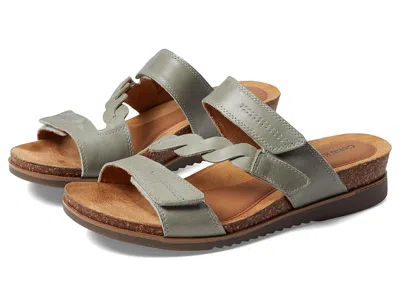 Cobb Hill May Slide - Women's Flat Shoes : Sage Leather : Enjoy endless comfort with every step by slipping into the Cobb Hill May Slides. ; Wedge heel sandals featuring leather upper with cutout detailing. ; Cushioned leather and textile footbed. ; Cork-wrapped midsole bring bohemian vibe to your style. ; Anatomically molded interior cushion pod helps to create optimal comfort. ; Three adjustable hook-and-loop closures make for a custom fit. ; Open round toe silhouette. ; Easy slip-on style. ; Sculpted TPR outsole provides traction control. ; Imported. Measurements: ; Heel Height: 3 4 in ; Weight: 8 oz ; Platform Height: 4 9 in ; Product measurements were taken using size 9, width B - Medium. Please note that measurements may vary by size. | Cobb Hill May Slide Women's Flat Shoes Sage Leather : 6 B - Medium