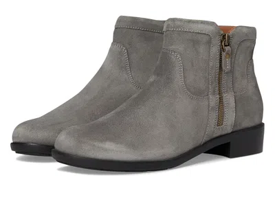 Cobb Hill Novela - Women's Boots : Grey Suede : Let your free spirit soar in the Cobb Hill Novela booties. These casual boots feature exceptional arch support, a cushioned footbed, and a zippered side closure. They are made of a leather upper, foam insole, and polyester lining. These heeled ankle booties offer the perfect blend of comfort and charm. ; Round toe shape. ; Block heels. ; Synthetic rubber outsole. ; Imported. Measurements: ; Heel Height: 1 1 10 in ; Weight: 1 lb ; Circumference: 11 5 12 in ; Platform Height: 2 5 in ; Product measurements were taken using size 7, width B - Medium. Please note that measurements may vary by size. | Cobb Hill Novela Women's Boots Grey Suede : 5.5 B - Medium, Leather