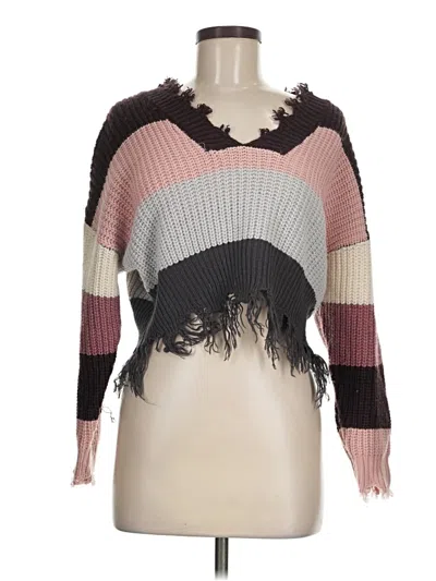 Coco + Jaimeson Pullover Sweater, Size: Medium. Item Details: Pink, Color Block Pattern, Plunge Neckline, Long Sleeve, Fringe, Women's Tops, 100% Acrylic