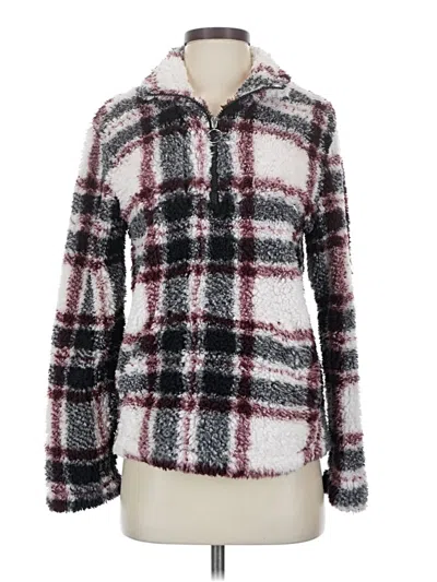 CoffeeShop Pullover Sweater, Size: Small. Item Details: Burgundy, Plaid Pattern, Collared Neckline, Long Sleeve, Flannel, Women's Tops, 100% Polyester