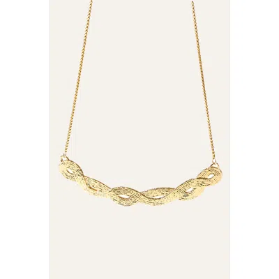 A fluid braid of metal, draped in light and texture. The Braid Necklace is an undulating, textured, and braided pendant masterfully crafted from reflective metals! This statement piece is formed from cotton threads for a unique look. Make a bold statement and show off your individual sense of fashion with this textile-inpired piece! I Hangs at the collarbone from 14 in of14k gold fill, box chain Cast in 14K Gold pated, reclaimed brass Handmade in NYC with recycled materials