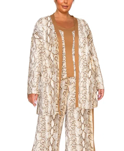 COIN 1804 Plus Size Python Contrast Cardigan Sweater In Multi
