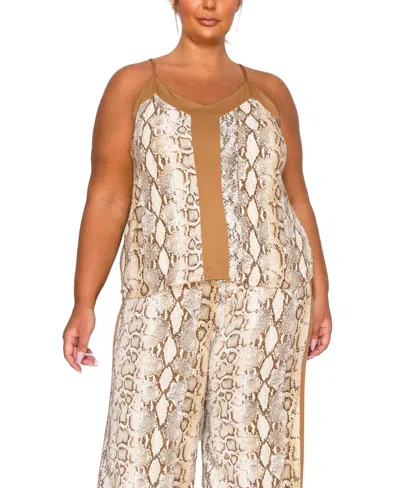 COIN 1804 Plus Size Python Contrast Panel Cami Top In Multi