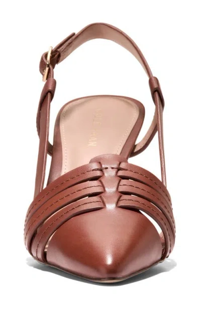 A walkable heel and cushioned footbed ensure daylong comfort in this pointy-toe pump decorated with breezy cutouts and secured by a slingback strap. 3" heel Adjustable slingback strap with buckle closure Leather upper/synthetic lining and sole Imported