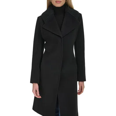 COLE HAAN SIGNATURE Slick Shawl Lapel Mixed Media Wool Blend Coat In Black