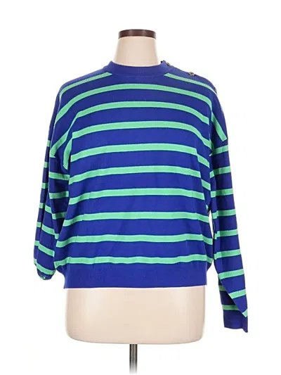 Collection Pullover Sweater, Size: X-Large. Item Details: Blue, Stripes Pattern, Mock Neckline, Long Sleeve, Women's Tops, Viscose/Polyester/Polyamide