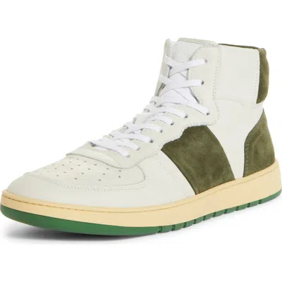 Suede accents angle up the sides and wrap the heel of a vintage-vibe high-top sneaker that sets softly polished leather in a cupsole of natural Italian rubber. Lace-up style Removable insole Leather upper and lining/rubber sole Made in Italy Men's Shoes