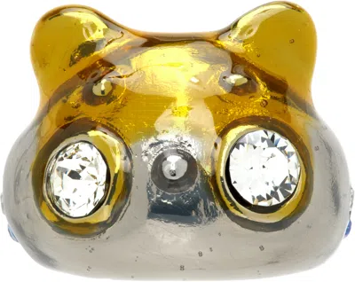 Recycled pewter ring in silver tone. · Swarovski crystals throughout · Enameled graphic at face Supplier color: Silver gold