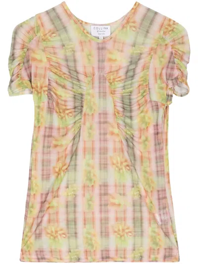 COLLINA STRADA Ruched Checked Mesh Top In Green