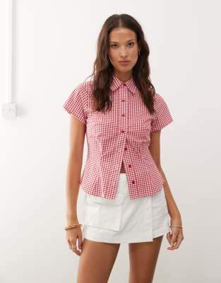 Tops by Collusion Exclusive to ASOS Gingham design Spread collar Button placket Short sleeves Regular fit