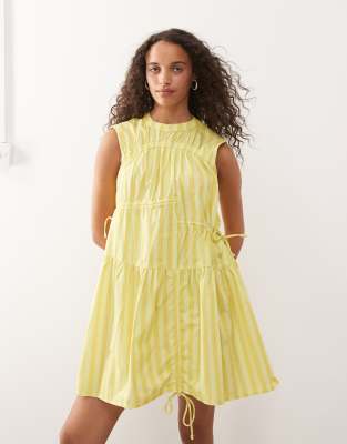 Dress by Collusion Exclusive to ASOS Stripe design Crew neck Sleeveless style Drawstring details Tie-back fastening Relaxed fit