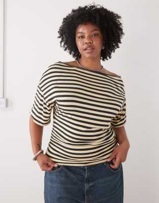 Tops by Collusion Off-shoulder design Drop shoulders Short sleeves Stripe pattern Relaxed fit