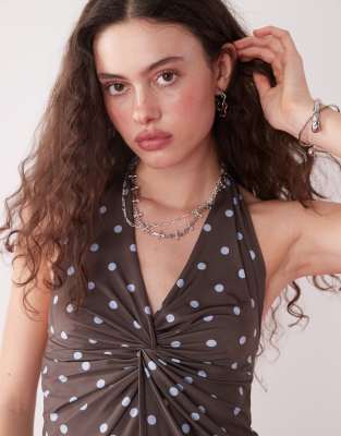 Tops by Collusion Exclusive to ASOS Polka-dot print Halterneck style Knot detail Slim fit