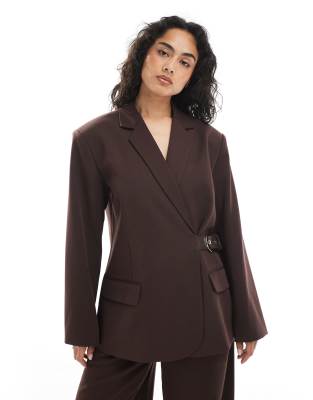 Tailored Oversized Belt Detail Blazer In Brown