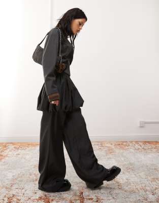 COLLUSION Wide Leg Tailored Pants In Charcoal - Part Of A Set-gray
