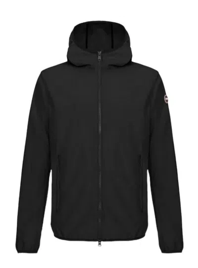 Hooded jacket made of waterproof and breathable stretch softshell. Water-repellent treatment.