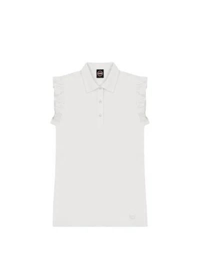 Women's polo shirt made of soft stretch cotton pique. The sleeves are enriched with ruffles which give a touch of femininity to the garment. Regular fit 3-button collar Colmar Originals logo applied on the bottom External fabric: 96% Cotton + 4% Elastane