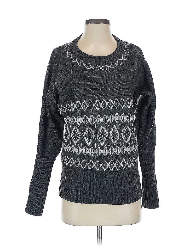 Columbia Pullover Sweater, Size: X-Small. Item Details: Gray, Argyle Pattern, Scoop Neck, Long Sleeve, Women's Tops, Cotton/Nylon/Wool