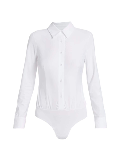 From the Classic Collection. Crafted of a luxe stretch blend, Commando's bodysuit is cut in a classic Oxford silhouette. Front darts and a crisp point collar define the look. Point collar Long sleeves Button-front closure Gusset snaps 72% nylon/28% elastane Dry clean Imported SIZE & FIT This style is constructed in a stretch fabric for a slim fit Measurements are taken from a US size Extra Small About 22" from shoulder to hip Bust, about 34" Model measurements: 5'10" tall Model is wearing a US size Small. Lingerie - Contemporary Collections > Commando > Saks Fifth Avenue > Barneys. Commando. Color: White. Size: XL.