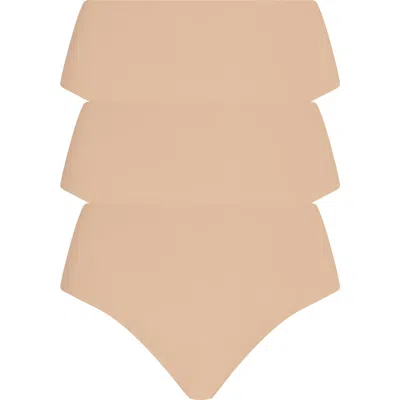 COMMANDO Classic 3-pack High Rise Thongs In Brown