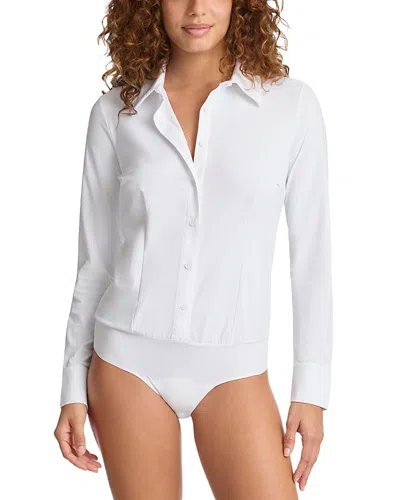 COMMANDO Classic Long Sleeve Button-down Thong Bodysuit In White