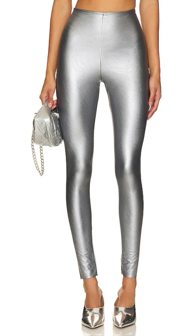 Commando Faux Leather Legging in Metallic Silver. Size L, M, S, XL. Self: 55% polyurethane 44% viscose 1% elastane Waistband: 72% nylon 28% elastane. Made in USA. Machine wash. Pull-on styling with wide stretch waistband. Signature smoothing internal waistband. 4-way stretch fit. Firming fabric with light compression Raw cut hem. Item not sold as a set. CMAN-WP116. SLG06. Through innovative design and technical fabrics, commando creates versatile, luxurious pieces that make your wardrobe work harder so that your style can be effortless. From their sleek ballet bodysuits to their best-selling leggings and tights, to the raw-cut underwear that started it all, commando is the go-to brand for seasonless staples that you can build a look around.