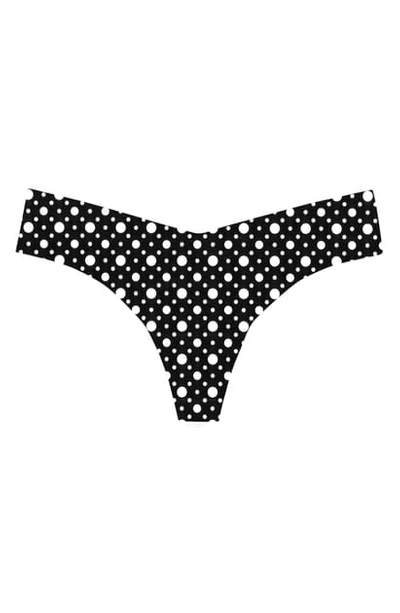Print Microfiber Thong In Black Retro Dots