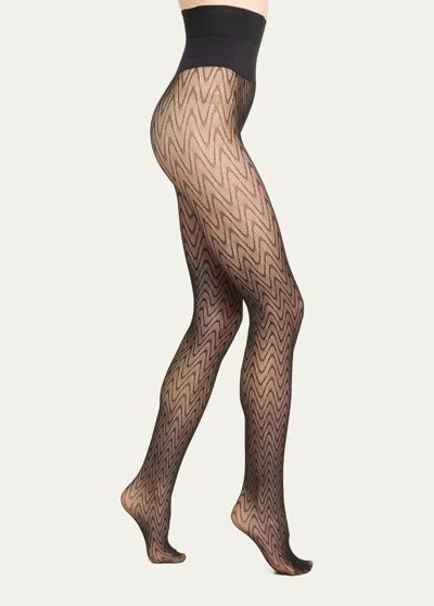 COMMANDO Sheer Stretch Wavy Net Tights In Black