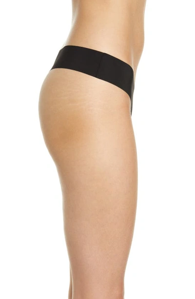 Raw edges give a seamless look to this microfiber thong that prevents panty lines.