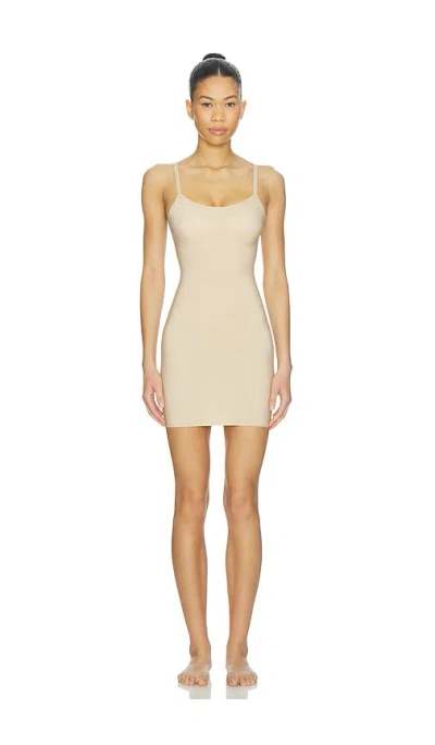 Commando Zone Smoothing Full Slip in Beige. - size XS (also in L, M, S) Commando Zone Smoothing Full Slip in Beige. - size XS (also in L, M, S) 70% nylon 30% elastane. Made in Thailand. Machine wash cold. Pull-on styling. Stretch jersey fabric. Attached shelf bra. Adjustable shoulder straps. CMAN-WI420. CC702. Through innovative design and technical fabrics, commando creates versatile, luxurious pieces that make your wardrobe work harder so that your style can be effortless. From their sleek ballet bodysuits to their best-selling leggings and tights, to the raw-cut underwear that started it all, commando is the go-to brand for seasonless staples that you can build a look around.