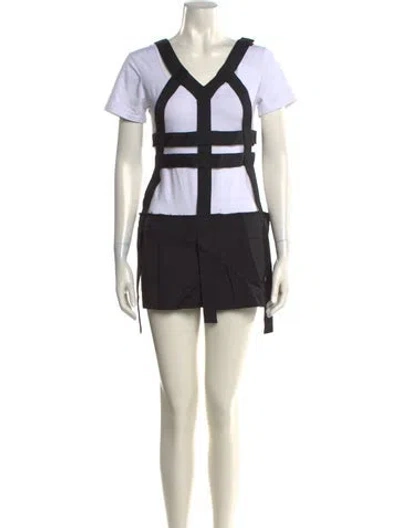 Comme des Garçons Wool Romper Black & Neutrals Colorblock Pattern Short Sleeve with V-Neck Fit: Jumpsuits and Rompers by Comme des Garçons typically fit true to size. | Comme des Garçons Wool Colorblock Pattern Romper in Black/Neutrals, Women's M