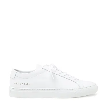 White Achilles casual sneakers with almond-shaped toes, front straps, and insoles decorated with brand embossed and flat bottoms.