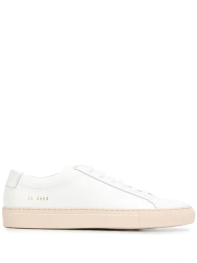 The designs of American-Italian brand Common Projects have amassed a cult following for their highly influential minimalist shoes, favouring a pared-back design embellished only with ten numbers towards the heel—an instantly recognisable detail among luxury footwear cognoscenti. Crafted in Italy from a supple calf leather and leather, these white Achilles Low sneakers from Common Projects feature an almond toe, a lace-up front fastening, a branded insole, a gold-tone number stamp to the outside and a flat rubber sole.