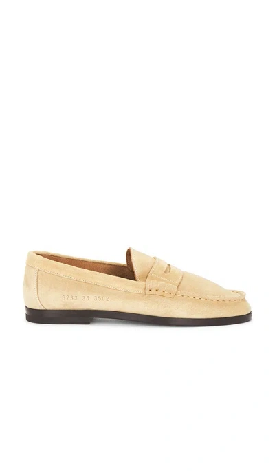 Common Projects Soft Loafer in Tan. - size 39 (also in 35, 36, 37, 38) Common Projects Soft Loafer in Tan. - size 39 (also in 35, 36, 37, 38) Suede upper with leather sole. Slip-on styling. Suede lining with leather footbed. Round toe. COMM-WZ74. 6233. Using only the finest materials and techniques, designers Flavio Girolami and Prathan Poopat have created a line of high-quality footwear that conveys their minimalist aesthetic and luxe appeal.