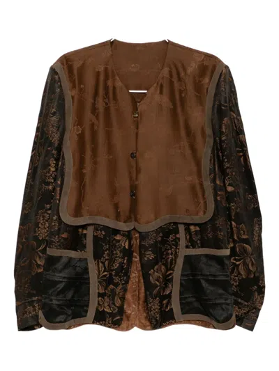 caramel brown front button fastening crew neck long sleeves two front patch pockets