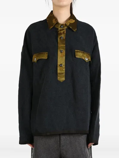dark navy contrasting collar two chest pockets button-up placket decorative stitch detailing