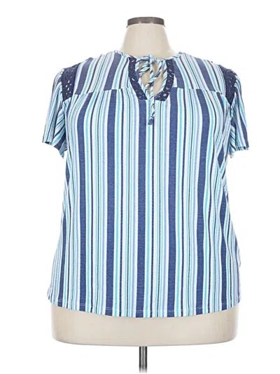 Como Blu Short Sleeve Blouse, Size: 3X. Item Details: Blue, Stripes Pattern, Collared Neckline, Women's Tops, Polyester/Rayon/Spandex
