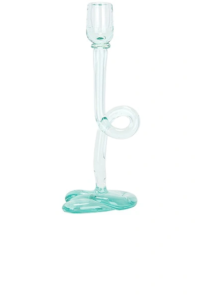 Completedworks Candlestick in Clear - Blue. Size all. 100% recycled glass. Made in Kenya. Hand wash recommended. Made from 100% broken window and bottle glass melted down and repurposed using old engine oil as fuel. Each item is 100% handmade items may differ slightly in shape and size. Measures approx 10 H. CRKF-WH1. B113. About the designer: Completedworks documents the beauty and complexity of the everyday through the practice of jewelry and ceramics. Working primarily from recycled materials, the brand's signature pieces gently roll against the tide of convention - using sculptural forms that weave, loop, twist, flow, enfold and expand to explore broader questions about the human condition and trade blows with history, politics and the language of art. As Artistic Director and Founder, Anna Jewsbury is responsible for developing collections and defining the brand's vision and image. Having studied Mathematics & Philosophy at Oxford, her aesthetic vocabulary is influenced strongly by reductionism, with a process drawing on the contrasts between high quality materials and purist elements.