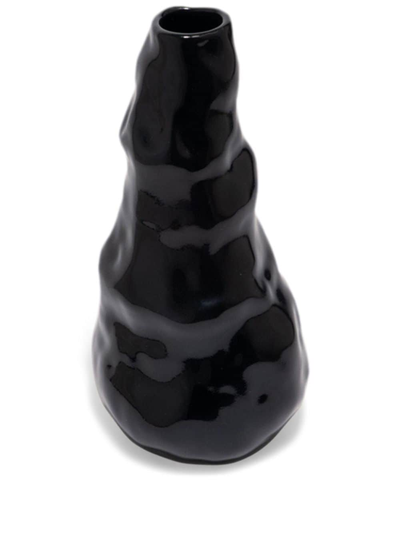 Completedworks Medium Vase in Black - Black. Size all. A Completedworks x Ekaterina Bazhenova Yamasaki collaboration. Ceramic. Made in Portugal. High shine glaze. Please note due to the handmade craftsmanship, slight differences and color will vary throughout.. Measures approx 4W x 9H x 3D. CRKF-UA13. B38. About the designer: Completedworks documents the beauty and complexity of the everyday through the practice of jewelry and ceramics. Working primarily from recycled materials, the brand's signature pieces gently roll against the tide of convention - using sculptural forms that weave, loop, twist, flow, enfold and expand to explore broader questions about the human condition and trade blows with history, politics and the language of art. As Artistic Director and Founder, Anna Jewsbury is responsible for developing collections and defining the brand's vision and image. Having studied Mathematics & Philosophy at Oxford, her aesthetic vocabulary is influenced strongly by reductionism, with a process drawing on the contrasts between high quality materials and purist elements.