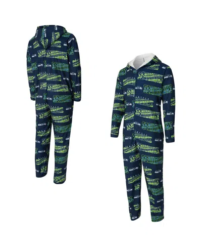 Concept Sport Men's College Navy Seattle Seahawks Shuffle All-over-print Microfleece Full-zip Union In Multi
