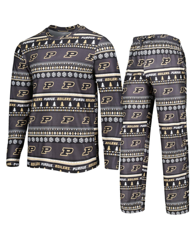 CONCEPTS SPORT Men's Black Purdue Boilermakers Swivel Long Sleeve T-shirt And Pants Sleep Set