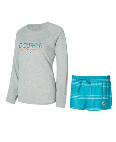 CONCEPTS SPORT Women's Aqua/gray Miami Dolphins Petition Raglan Long Sleeve T-shirt And Shorts Set In Multi