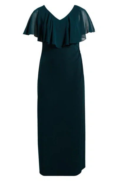 CONNECTED APPAREL Chiffon Flutter Sleeve Gown In Hunter