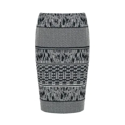 CONQUISTA Women's Black Below-knee Leopard Print Elastic Gabardine Pencil Skirt