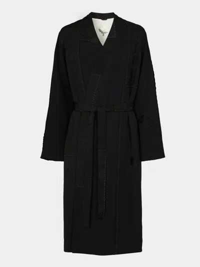 CONSIDERED OBJECTS Dots And Lines Hand-stitched Silk Robe Size: L Abask Luxury Gift In Gray