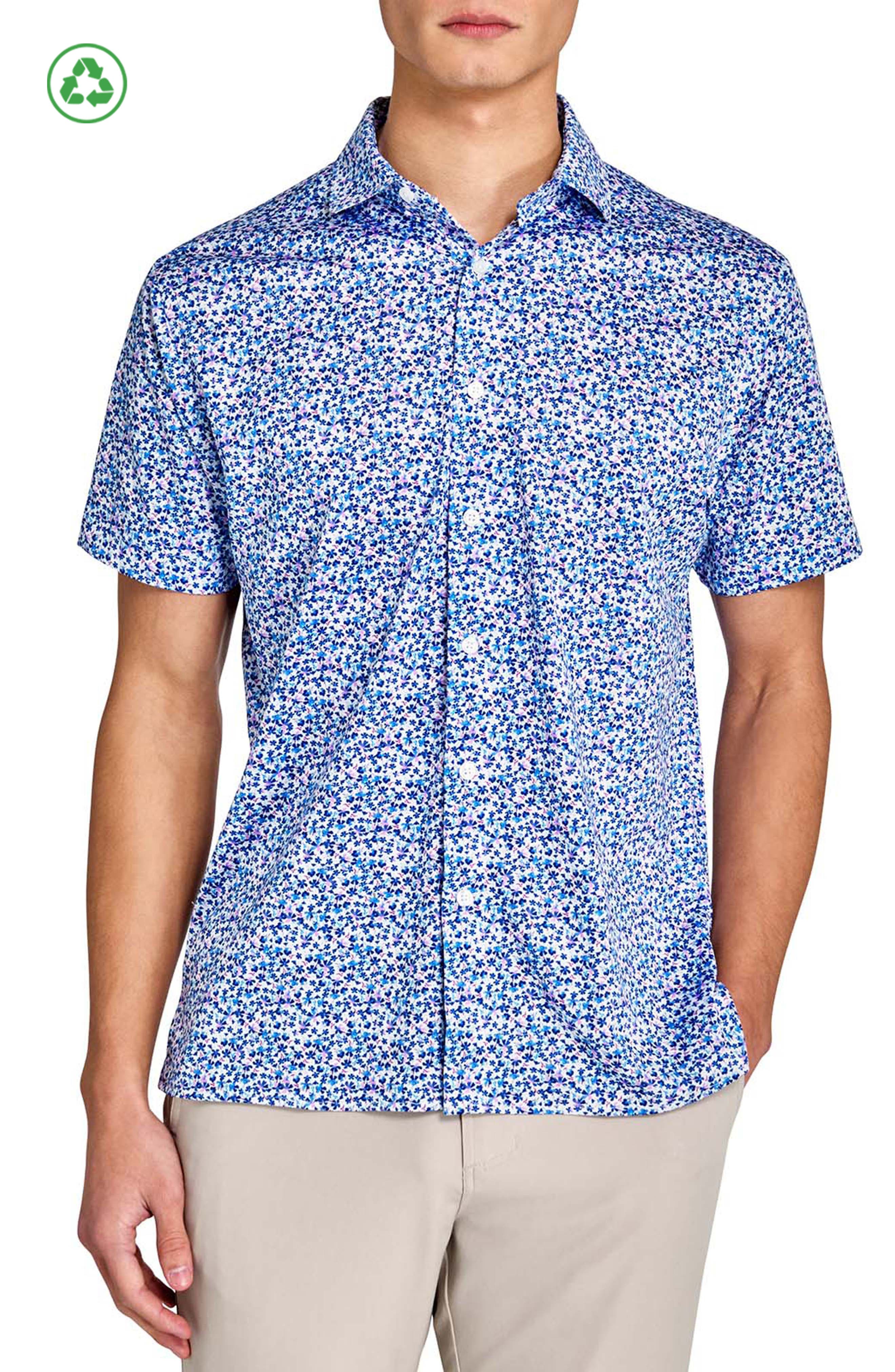 Relax and unwind with our Short Sleeve Performance Shirt. A wardrobe essential designed to effortlessly adapt to any activity, from golfing, to casual outings. Whether you prefer a polished tucked look or laid-back untucked style, this shirt offers unparalleled flexibility. Elevate your wardrobe with sustainable fashion and experience the Con.Struct Green difference. Made from Recycled Fabrics Style: Classic Fit Fabric Finish: Quick Dry Wicking, Odor Control, Anti-Microbial, UV 50+ Finish Collar Type: Spread Collar Features: French Placket, Knife Pleats, Straight Hem Distinctive Features: Piping Inside Neck Seam, Side Seam Vents Rubberized Heat Seal Logo At Center Back Neck