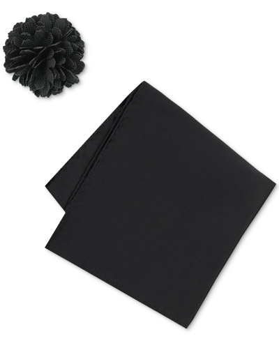 CONSTRUCT Men's Solid Pocket Square & Lapel Pin Set In Noir