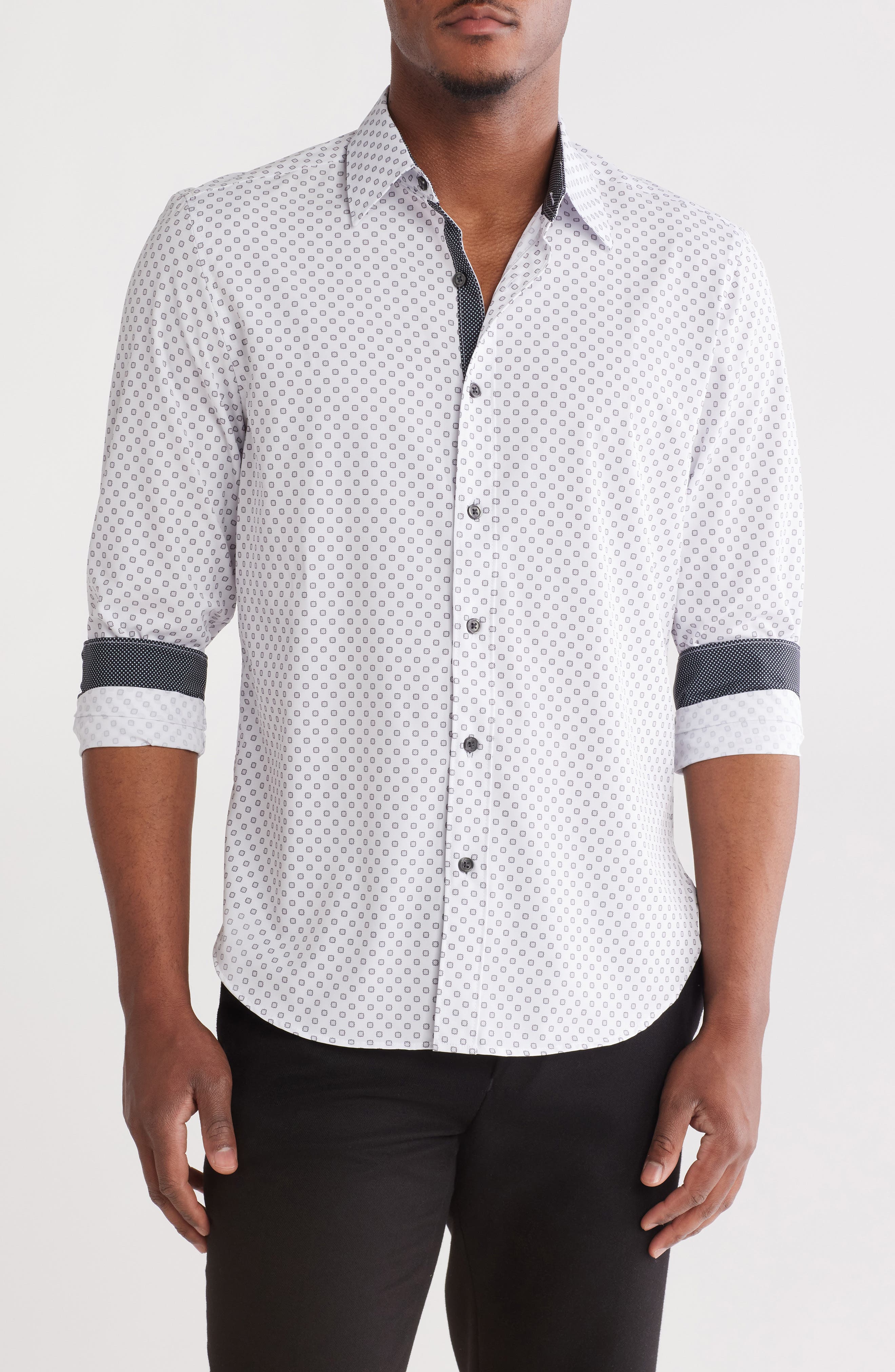 CONSTRUCT Slim Fit Geo Print 4-way-stretch Button-up Shirt In White